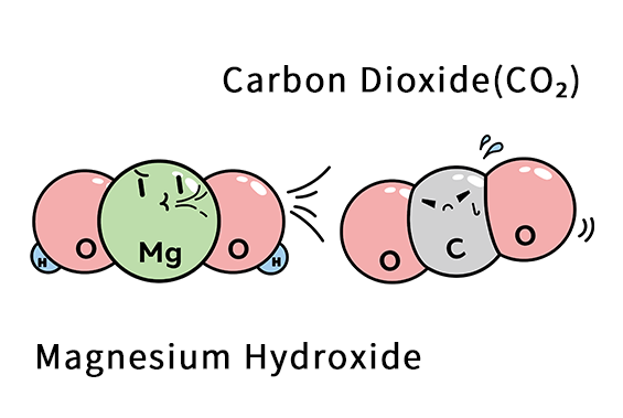 When magnesium oxide that reacts with water, it turns into magnesium hydroxide, which is more effective at adsorbing and immobilizing CO₂ than magnesium oxide is.